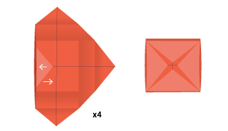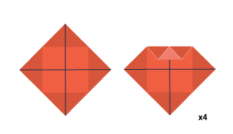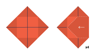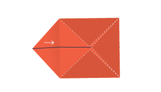 Сгънете горните по-малки триъгълници върху страничните. След като бъдат сгънати, сгънете двата странични триъгълника, които все още са непокътнати. Те трябва да са напълно сгънати до достигане на разреза.