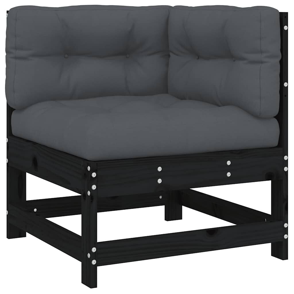 vidaXL Ъглов диван с възглавници, черен, борово дърво масив