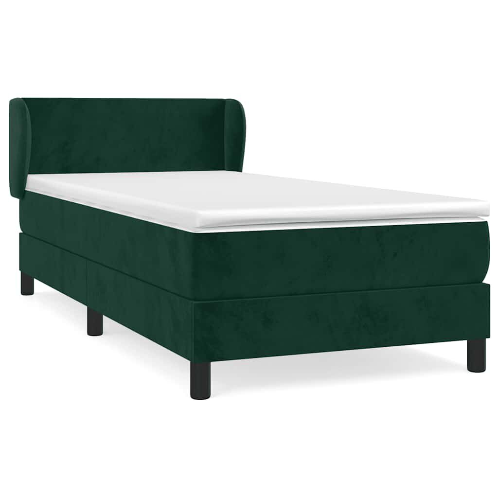 vidaXL Боксспринг легло с матрак, тъмнозелена, 90x190 см, кадифе