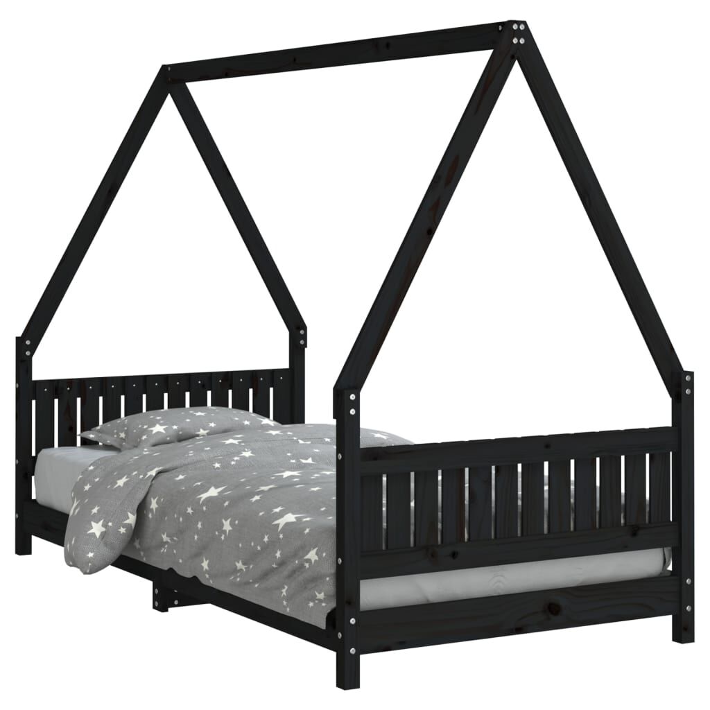 vidaXL Детска рамка за легло, черна, 90x190 см, бор масив