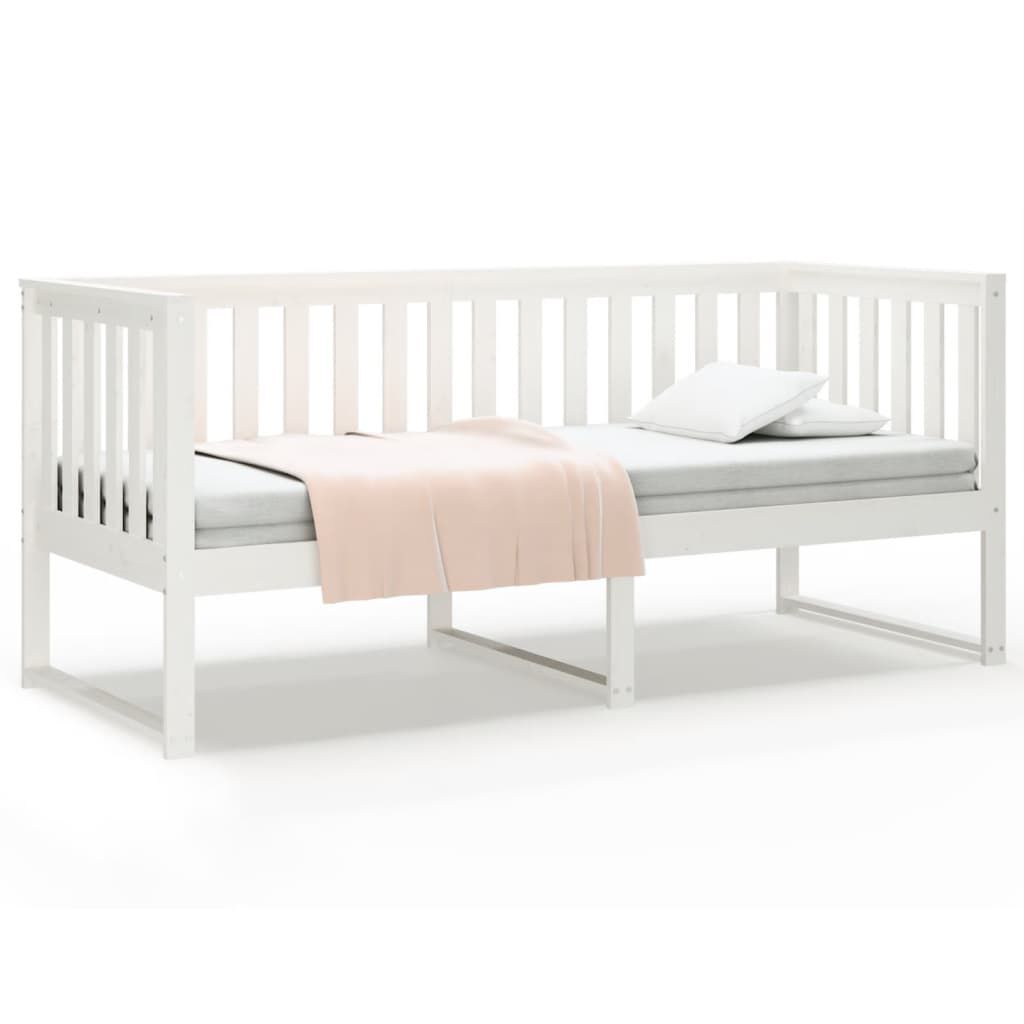 vidaXL Дневно легло без матрак, бял, 80x200 см, борово дърво масив