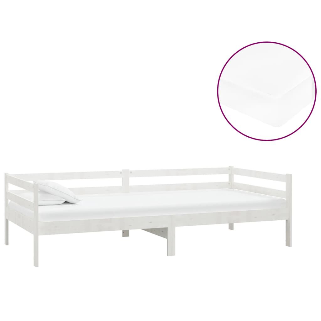 vidaXL Дневно легло с матрак, 90x200 см, бяло, борово дърво масив