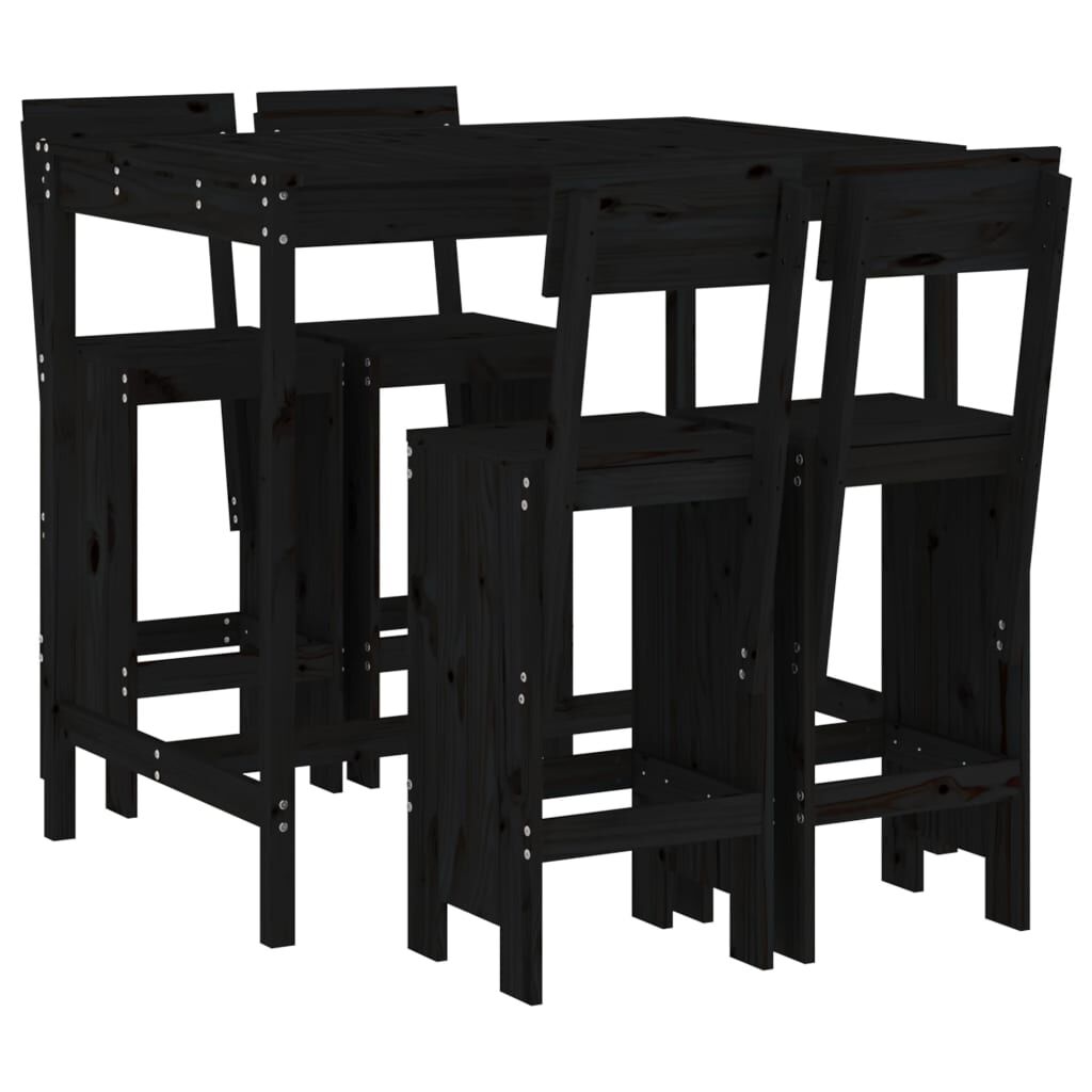 vidaXL Градински бар комплект от 5 части, черен, масивно дърво бор