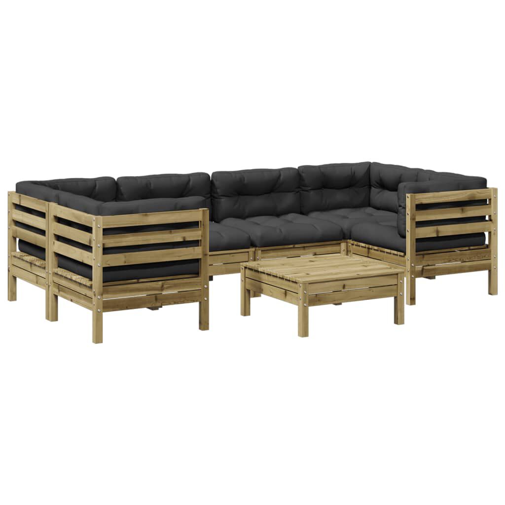 vidaXL Градински диван от 7 части с възглавници, импрегниран бор
