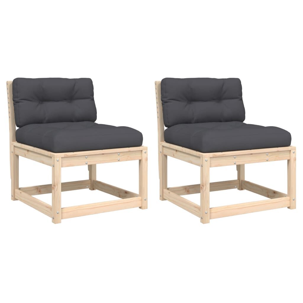vidaXL Градински дивани с възглавници, 2 бр, борово дърво масив