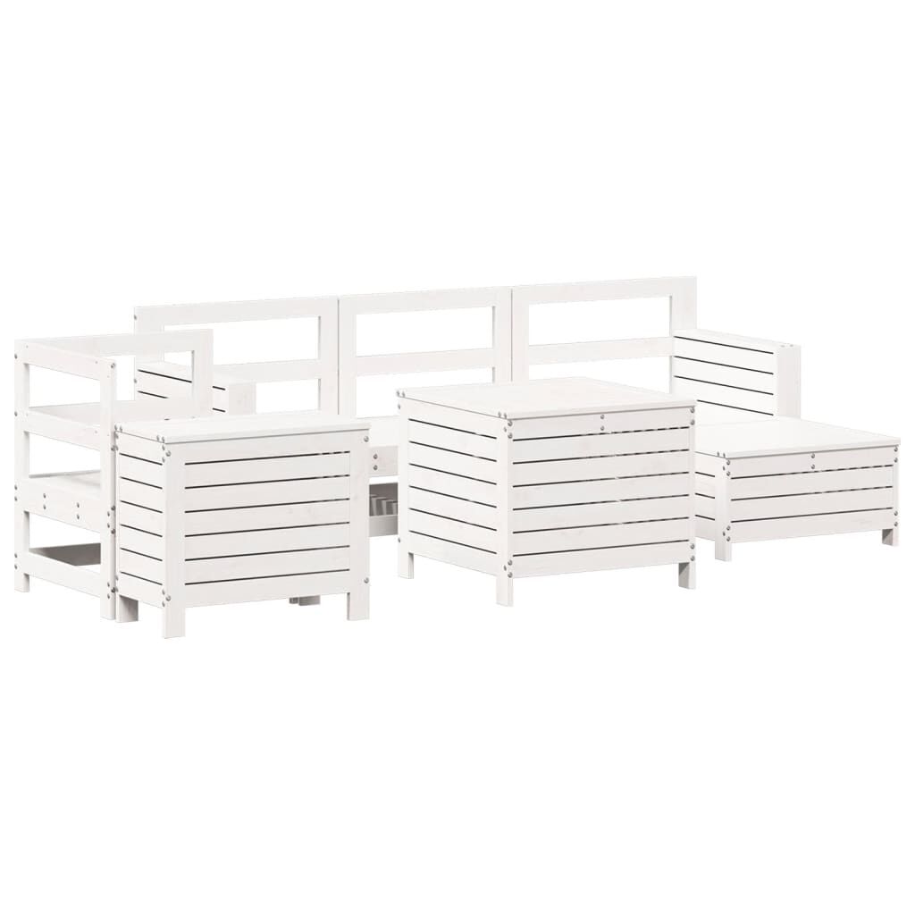 vidaXL Градински комплект диван от 7 части, бял, масивно дърво бор