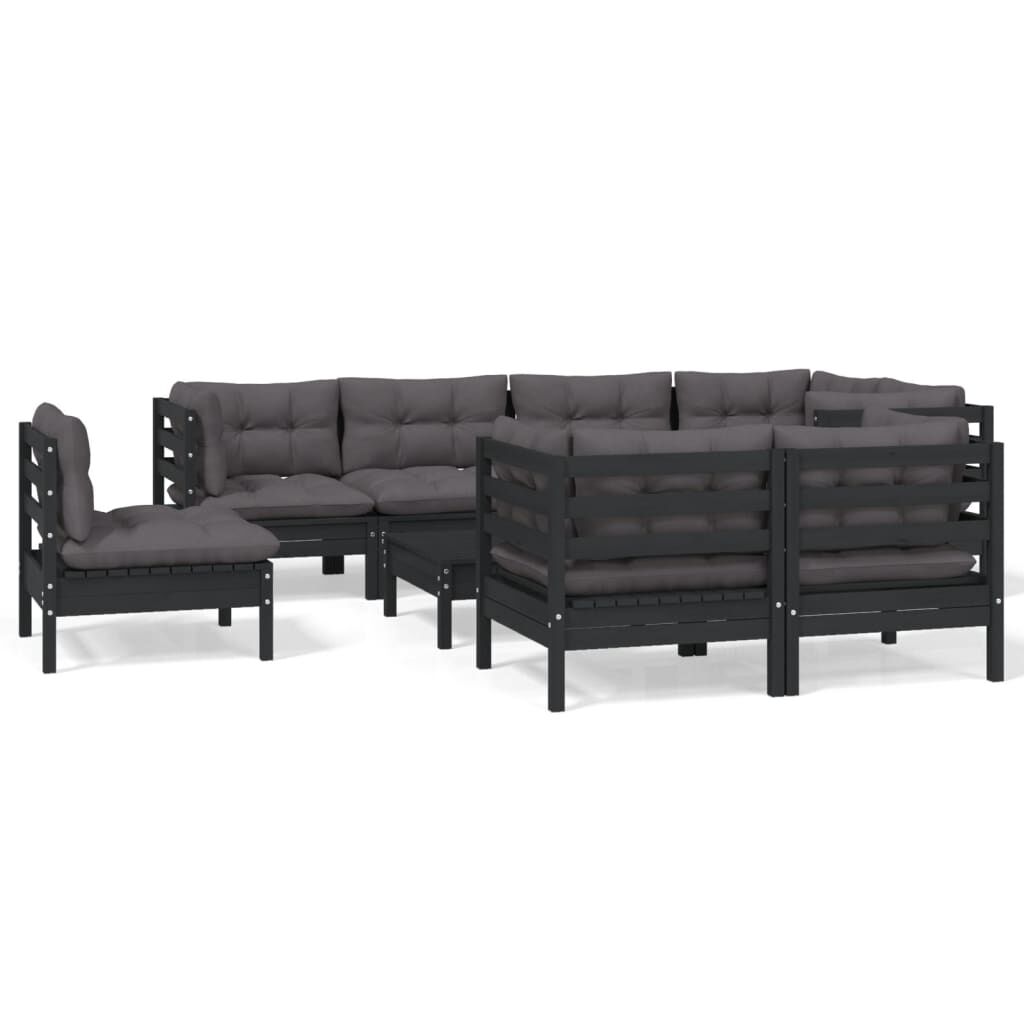 vidaXL Градински лаундж комплект с възглавници 9 части черен бор масив