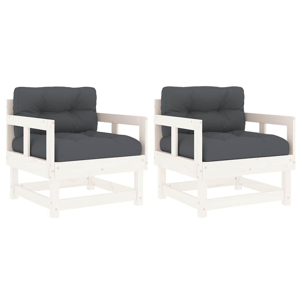 vidaXL Градински столове с възглавници, 2 бр, бели, бор масив