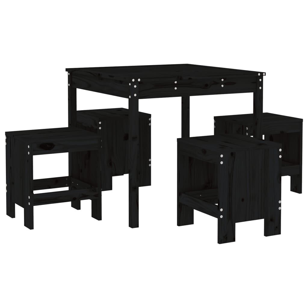 vidaXL Градински трапезен комплект от 5 части, черно, масивен бор