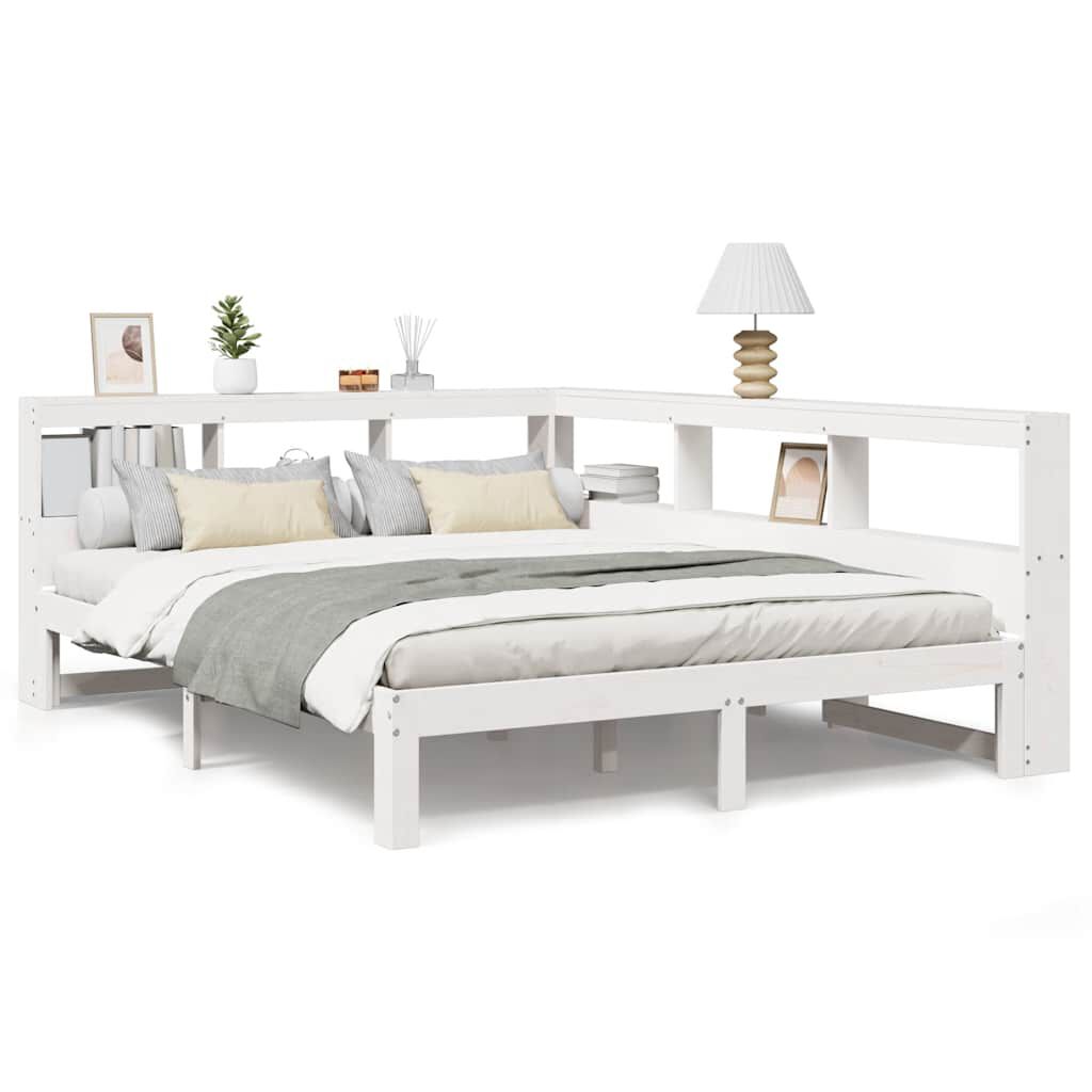 vidaXL Легло с етажерка за книги, без матрак, 140x190 см, бор масив