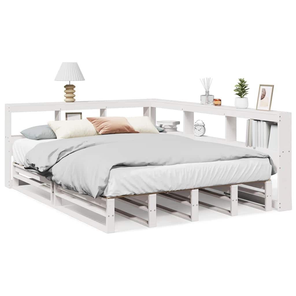 vidaXL Легло с етажерка за книги, без матрак, 140x190 см, бор масив