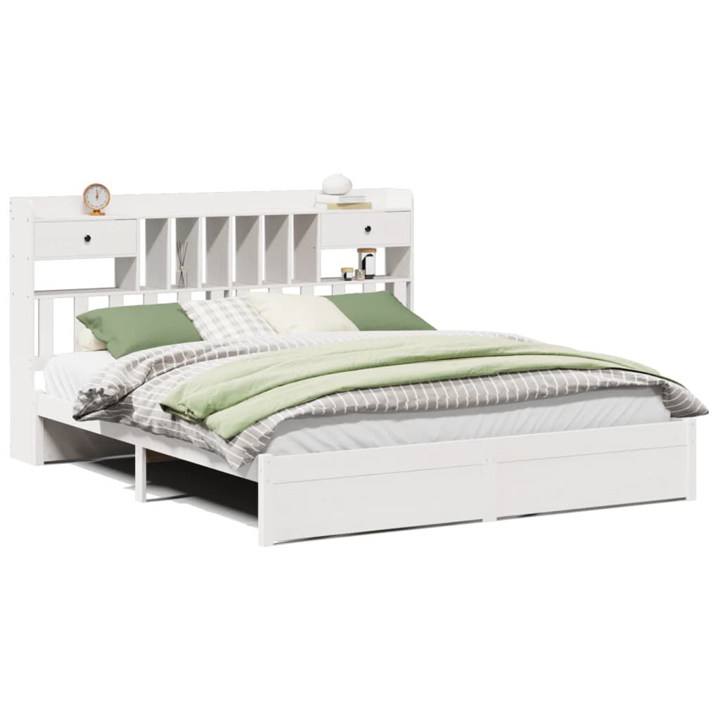 vidaXL Легло с етажерка за книги, без матрак, 180x200 см, бор масив
