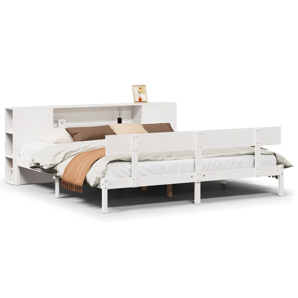 vidaXL Легло с етажерка за книги, без матрак, 200x200 см, бор масив