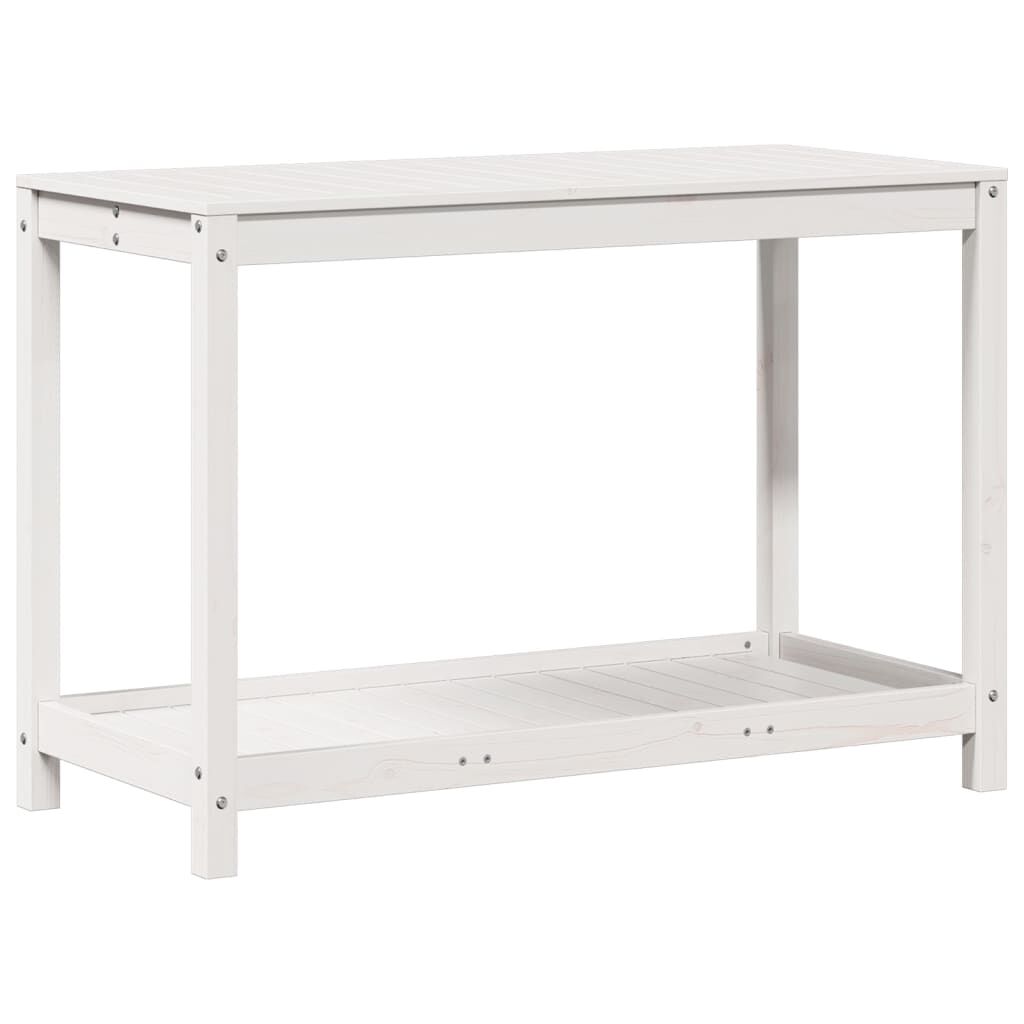 vidaXL Маса за разсаждане с рафт, бял, 108x50x75см, борово дърво масив