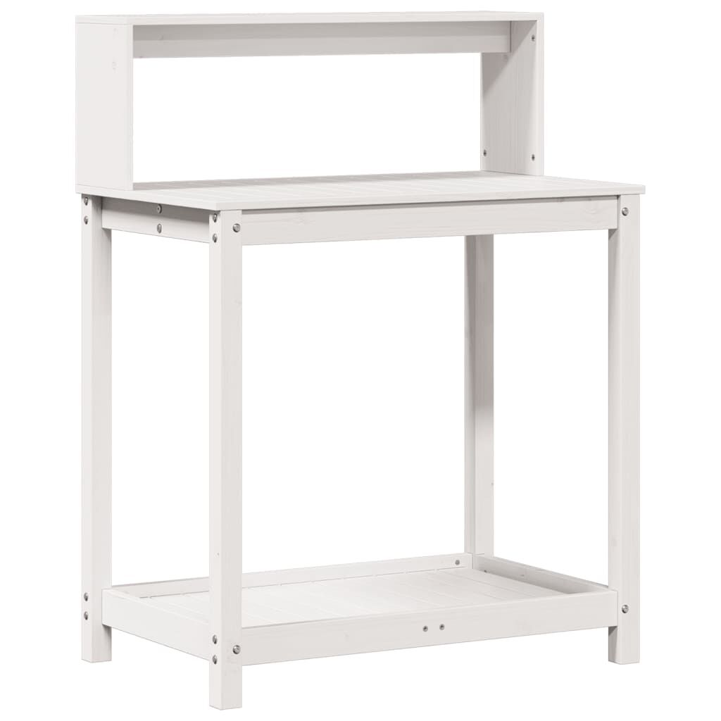 vidaXL Маса за разсаждане с рафтове, бяла, 82,5x50x109,5 см, бор масив