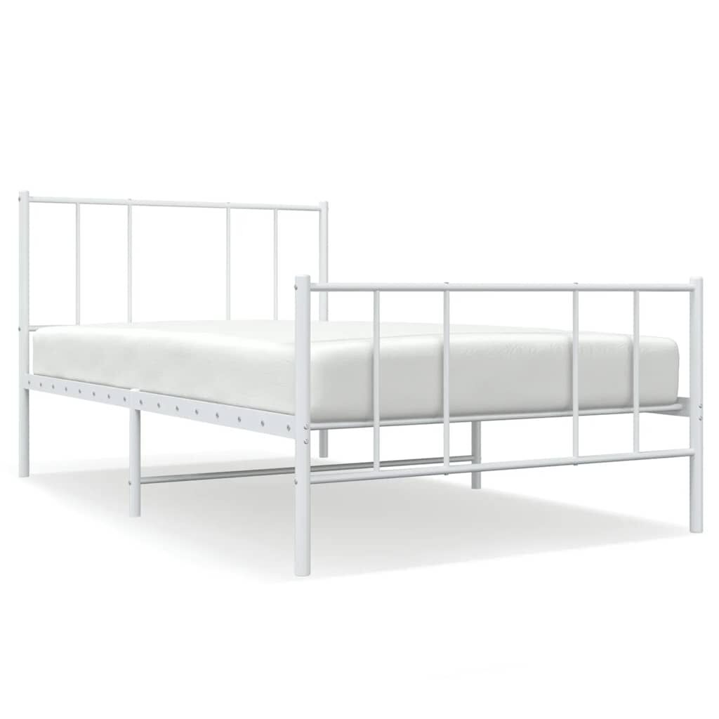 vidaXL Метална рамка за легло с горна и долна табла, бяла, 100x190 см