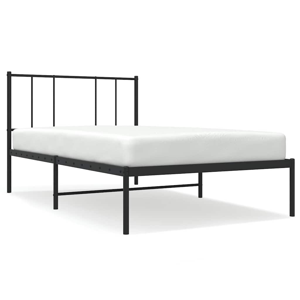 vidaXL Метална рамка за легло с горна табла, черна, 100x190 см