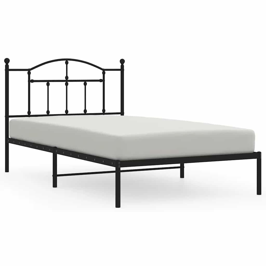 vidaXL Метална рамка за легло с горна табла, черна, 100x200 см