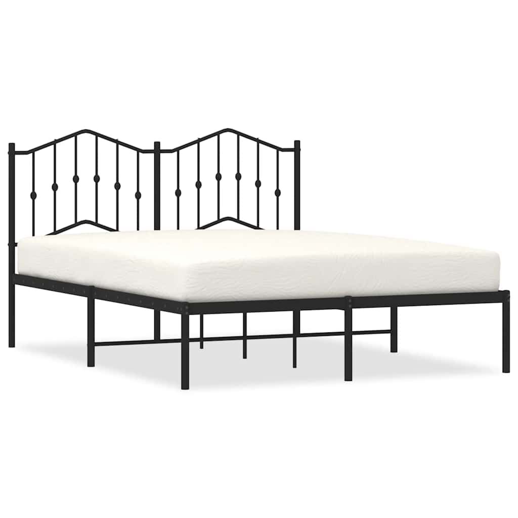 vidaXL Метална рамка за легло с горна табла, черна, 150x200 см