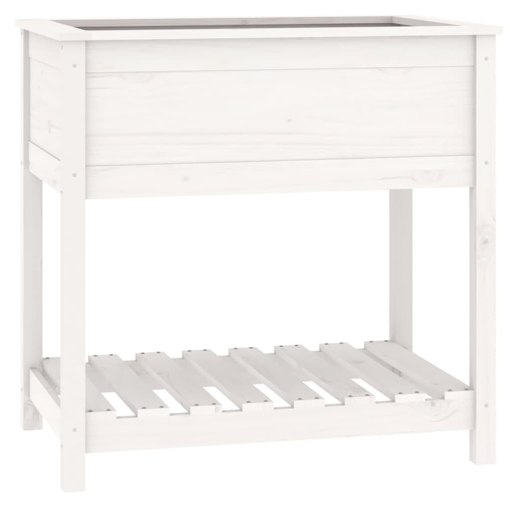 vidaXL Плантер с рафт, бяла, 82,5x54x81 см, борово дърво масив
