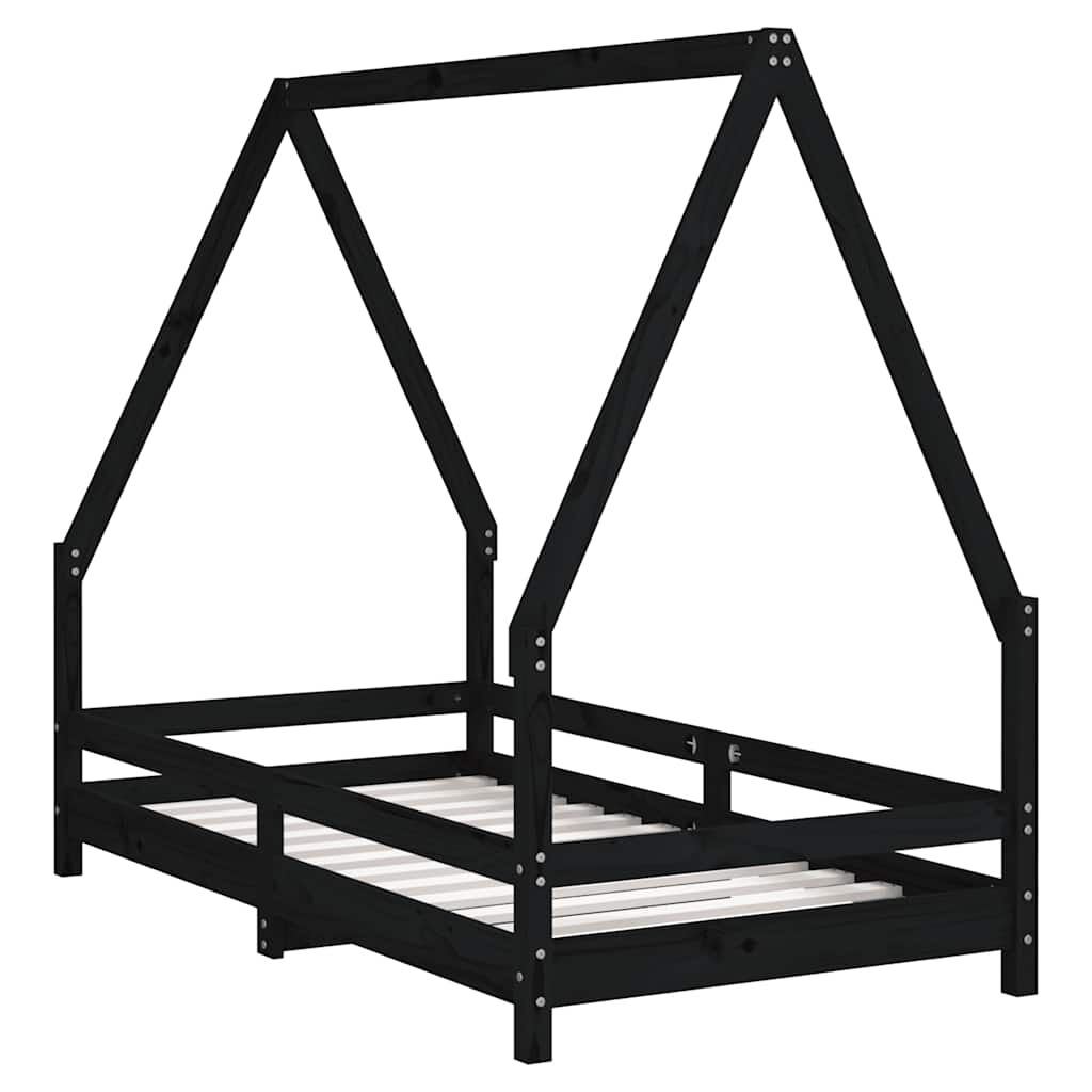 vidaXL Рамка за детско легло черна 80x160 см масивно борово дърво