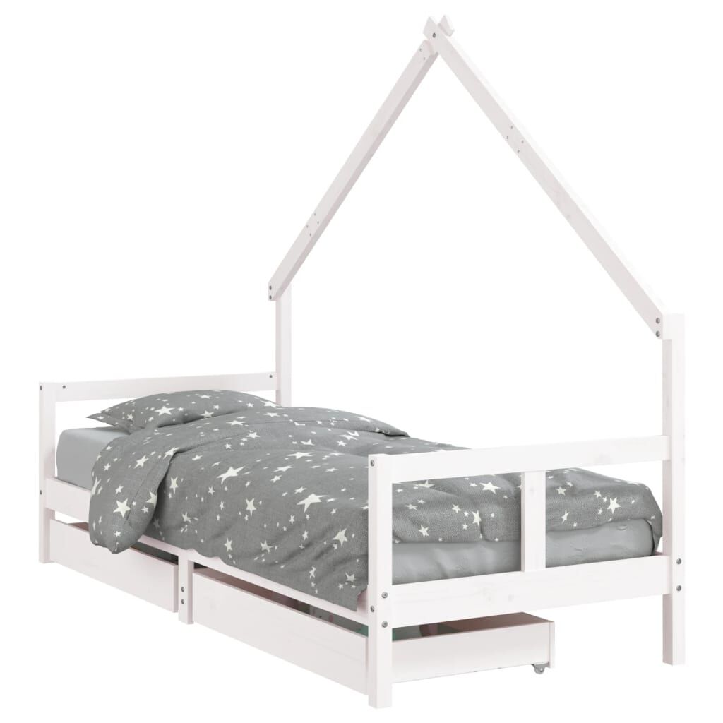 vidaXL Рамка за детско легло с чекмеджета, бяла, 80x200 см, чам масив