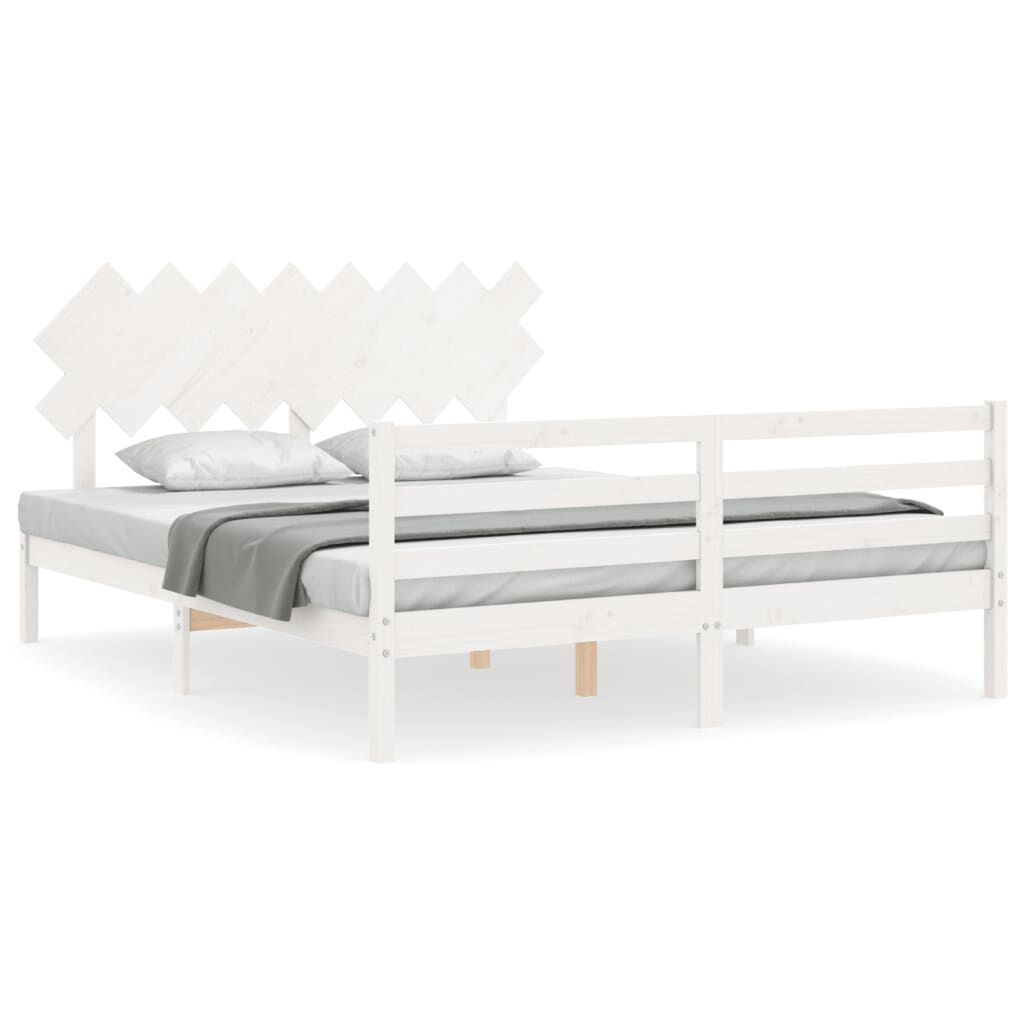 vidaXL Рамка за легло с табла, бяла, 160х200 см, масивно дърво