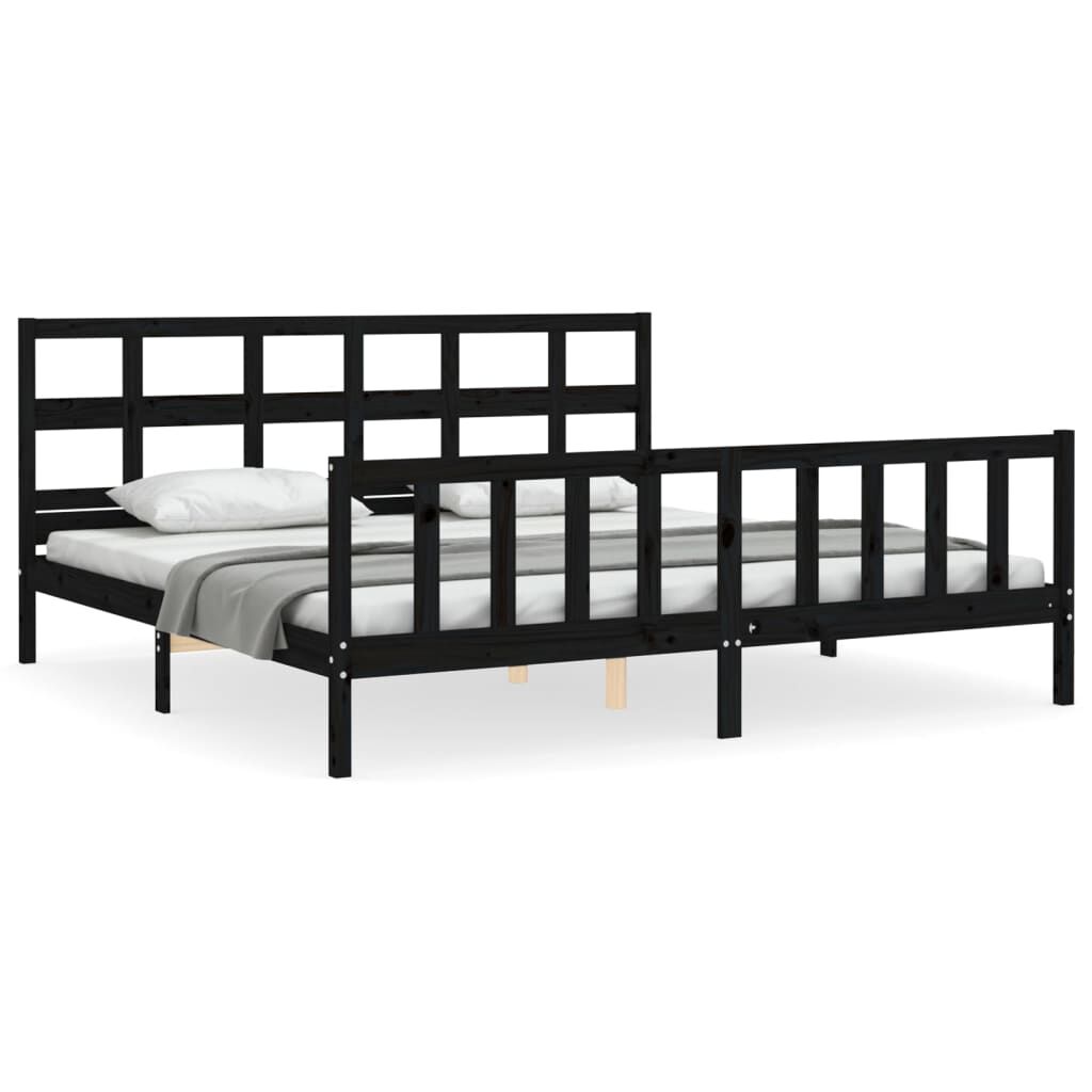 vidaXL Рамка за легло с табла, черна, 200x200 см, масивно дърво