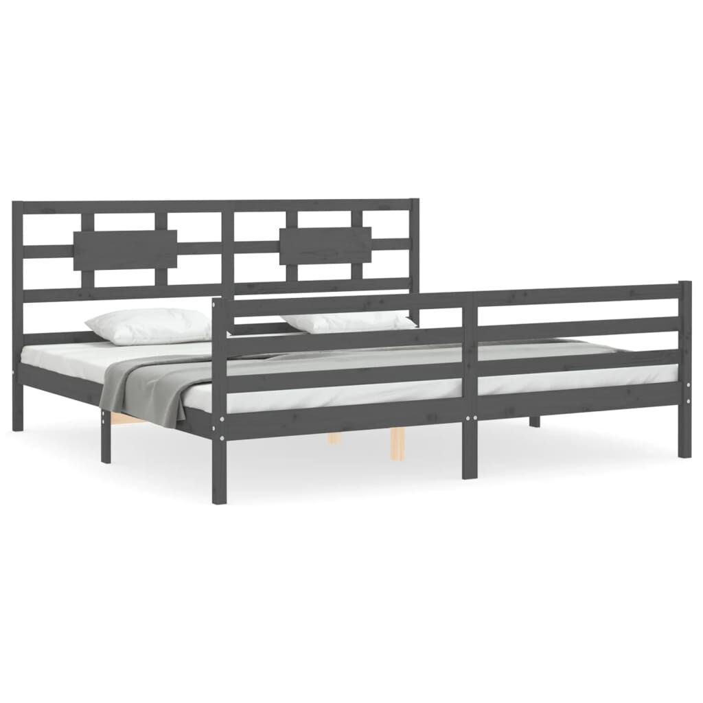 vidaXL Рамка за легло с табла, сива, 200х200 см, масивно дърво