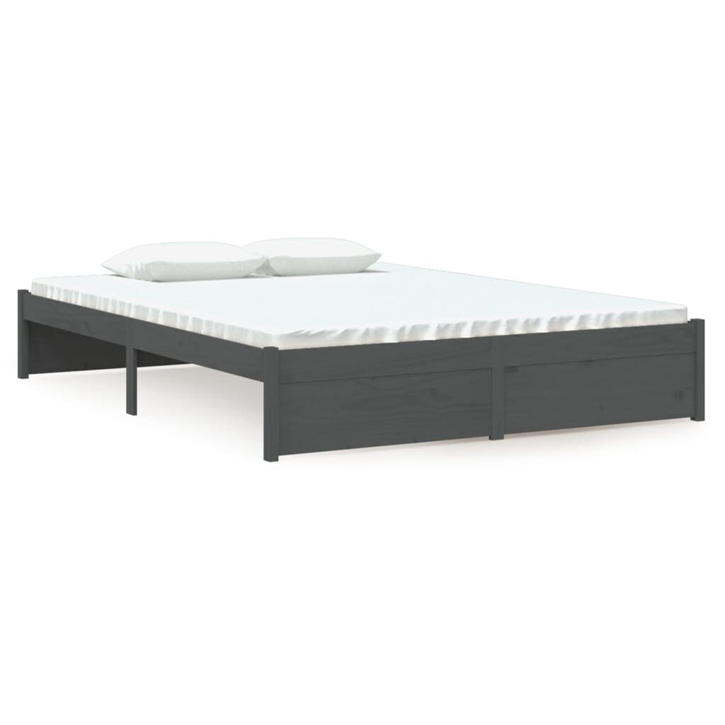 vidaXL Рамка за легло, сива, дърво масив, 135x190 cм, Double
