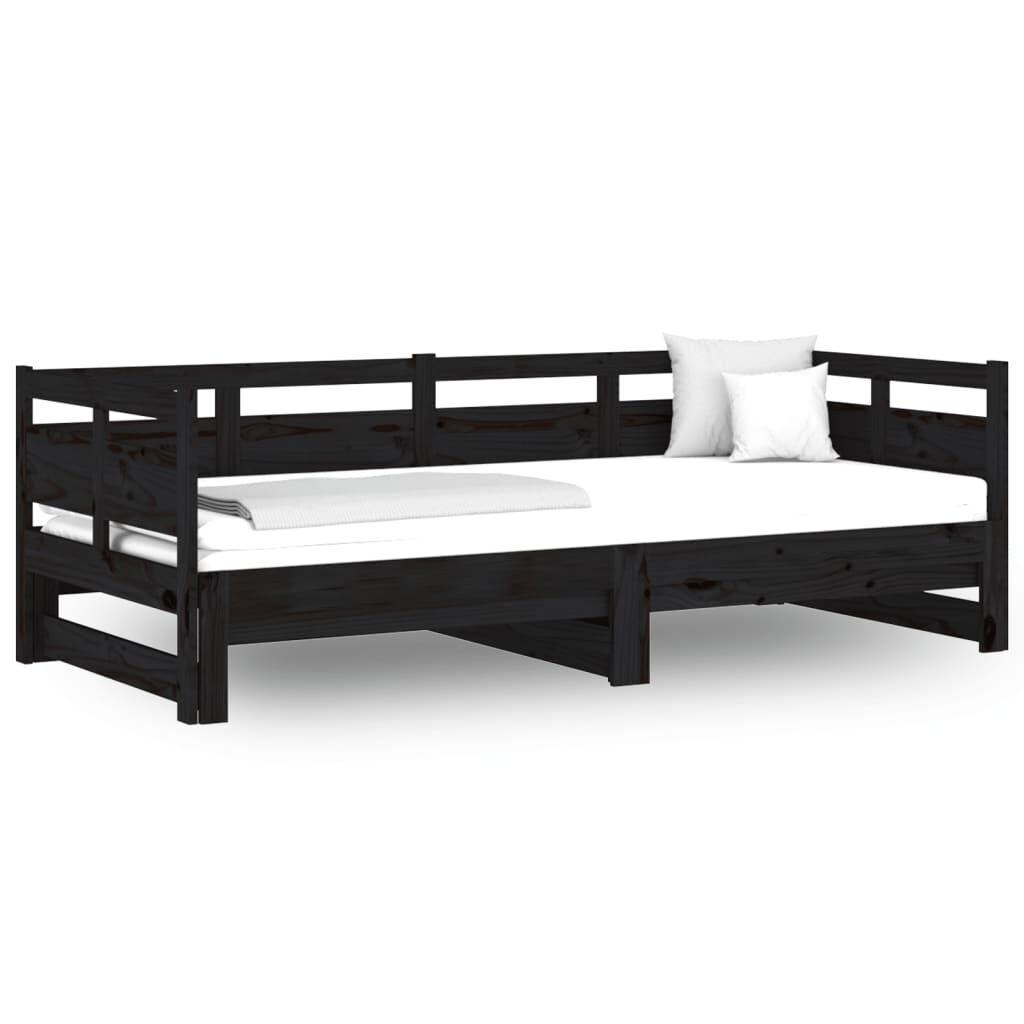 vidaXL Разтегателна кушетка, черна, борово дърво масив, 2x(80x200) см