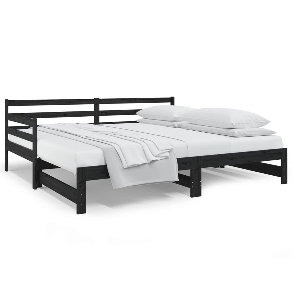 vidaXL Разтегателно дневно легло, черно, 2x(90x190) см, бор масив