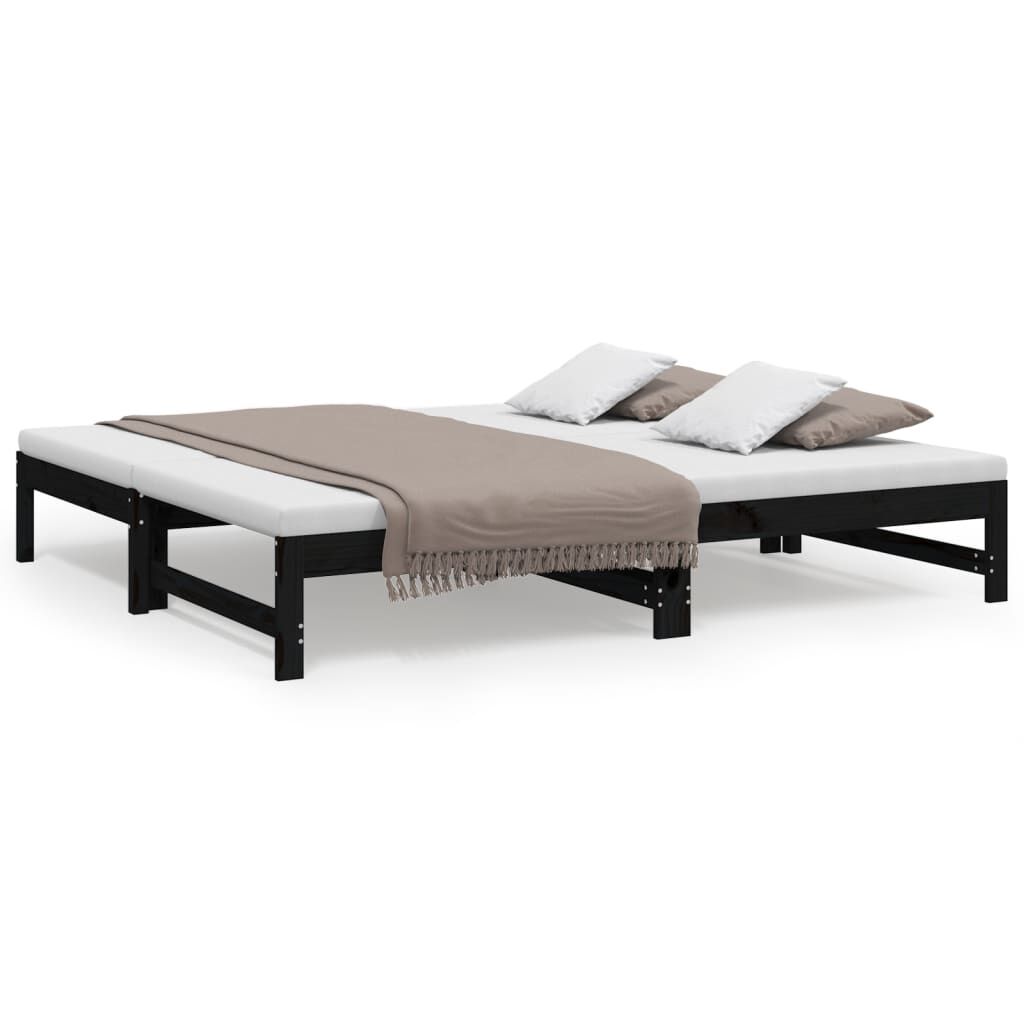 vidaXL Разтегателно дневно легло, черно, 2x(90x190) см, бор масив