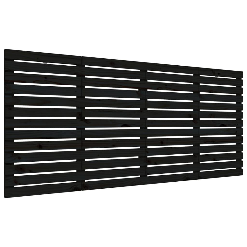 vidaXL Стенна табла за спалня, черна, 186x3x91,5см, борово дърво масив
