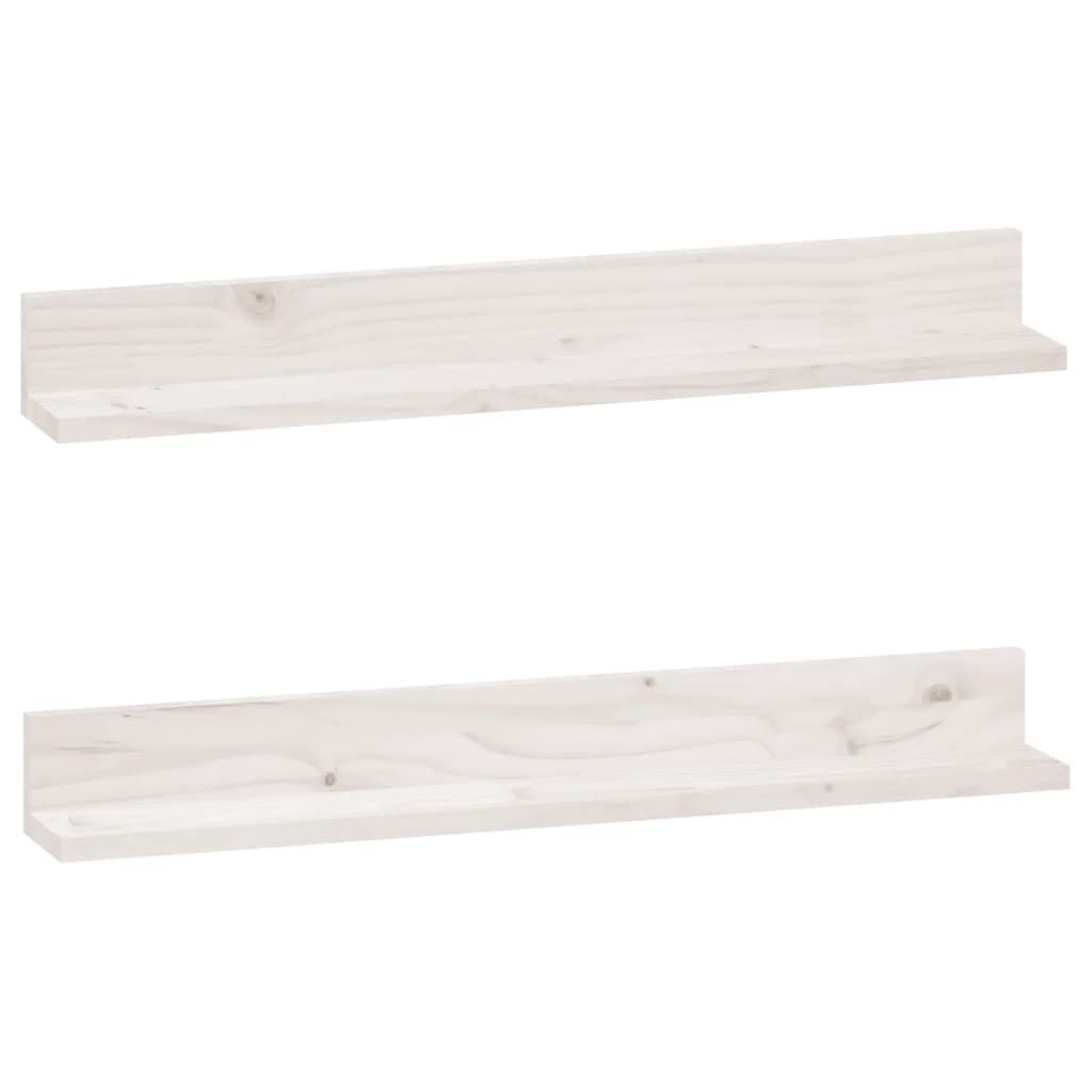 vidaXL Стенни рафтове, 2 бр, бели, 80x11x9 см, масивно борово дърво