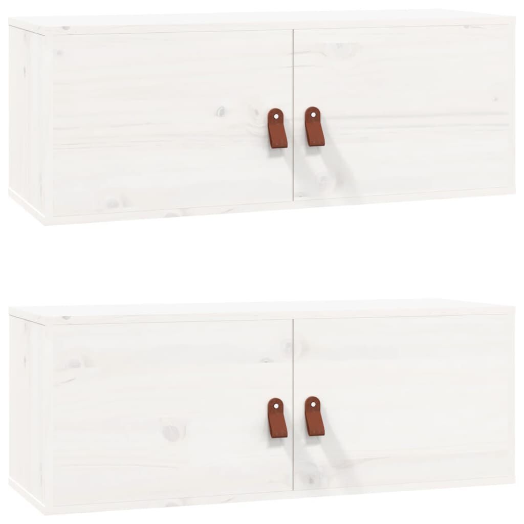 vidaXL Стенни шкафове, 2 бр, бели, 80x30x30 см, бор масив