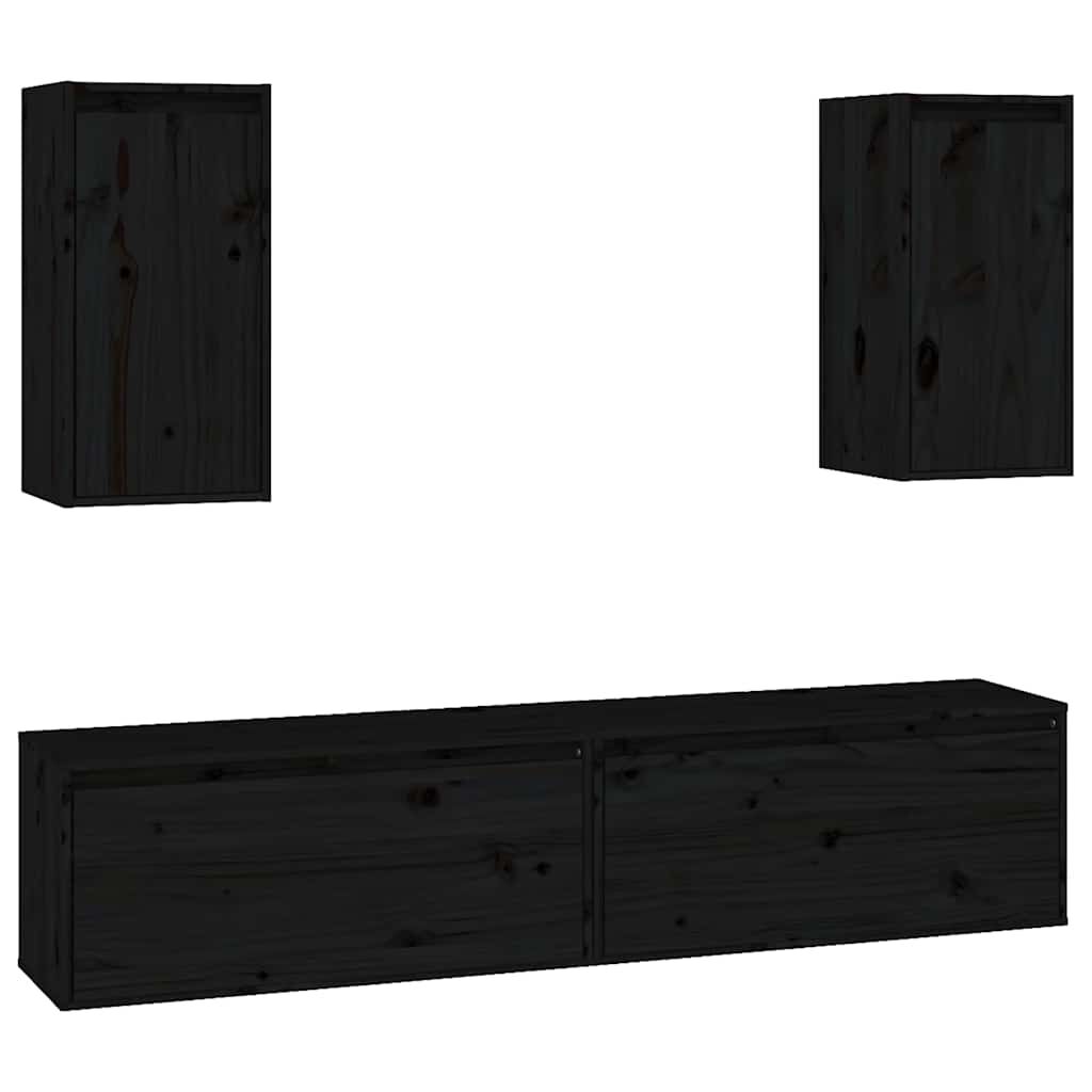 vidaXL ТВ шкафове, 4 бр, черни, бор масив