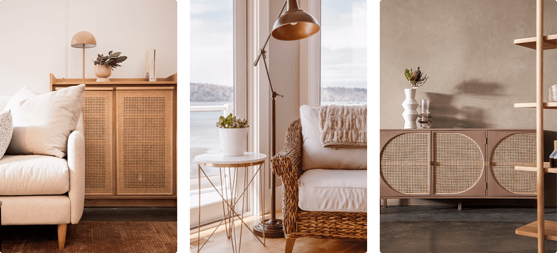 Трендът на изделията от ратан добавя щипка изтънченост към дома ви по един мек и прекрасен начин. Благодарение на цветовата си палитра ратанът създава свежа, топла и открита атмосфера, където и да решите да го поставите. Нежните нюанси на ратана (естествен или изкуствен) създават дълбочина чрез простота, когато се съчетаят със свежо бяло, фини нюанси на сивото и меки бисквитени тонове. Уверете се, че го допълвате с щрихи от зеленина, за да създадете естественото усещане в помещението, което ви приканва да забавите темпото и да се отпуснете.