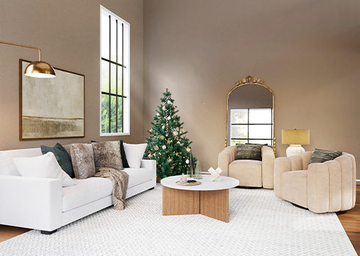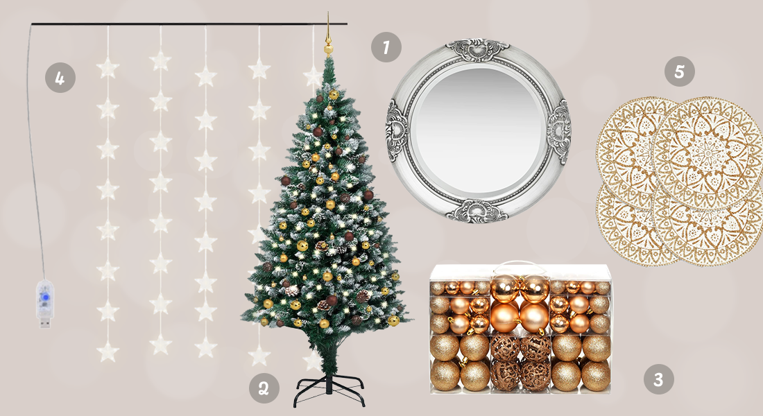 Тези красиви металически акценти надхвърлят рамките на декорациите. Добавете ги в мебели, осветление и др. Открийте нашите сервизи за маса, венци, осветление и по-дребни детайли за пълно празнично преобразяване на дома.