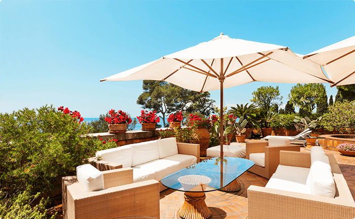 Разумният избор е да инвестирате в подходящ сенник. В зависимост от външното ви пространство можете да намерите чудесни решения за приятен и проветрив сенник. На балкона подхожда слънцезащитно платно, балконски параван, дори по-малка тента. Ако разполагате с градина, тогава ви препоръчваме чадър или беседка. Каквото и решение за сянка да изберете за вашето пространство, то може да внесе и малко стил. Затова изберете такива в ярки цветове за едно прекрасно лято на открито.