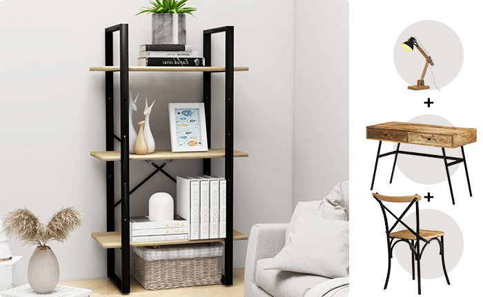 Мебелите и аксесоарите по ваш избор могат да се впишат във всеки интериорен стил. Един от най-популярните избори е да обзаведете домашна библиотека в индустриален стил. За тази цел се съсредоточете върху мебели и декорации, които съответстват на индустриалната библиотека. Започнете, като потърсите индустриални стелажи – метални рафтове в черно, сиво и бяло, които са здрави и модерни. Декорирайте мястото до бюрото си с очарователна наземна лампа, комбинираща мангово дърво масив и метал. Когато обзавеждате домашна библиотека в индустриален стил, използвайте различни аксесоари и мебели, които подчертават хладината на индустриалния стил.