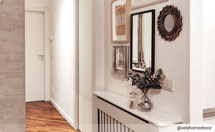 Огледалото в антрето има не само една функция. Първата е очевидна – ще искате да хвърлите един последен поглед в него, преди да напуснете дома си. В случай, че пространството ви е по-малко, огледалото ще отразява светлината и оптически ще го увеличи. Можете да експериментирате с различни форми и рамки, за да подчертаете декоративната му функция.